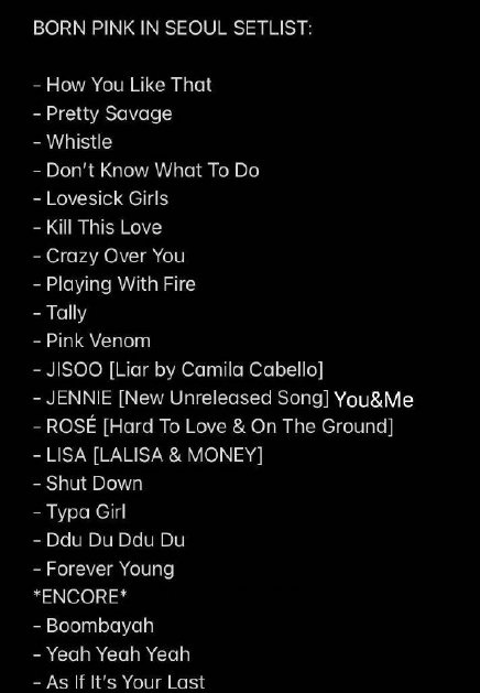 BLACKPINK世界巡回演唱会《BORN PINK WORLD TOUR KUALA LUMPUR》将于2023年3月4日在吉隆坡武吉加里尔国家体育场(Bukit Jalil National Stadium)举办,现在就让我们来复习她们之前演唱会的歌单,到时一起跟BLACKPINK嗨炸全场吧!