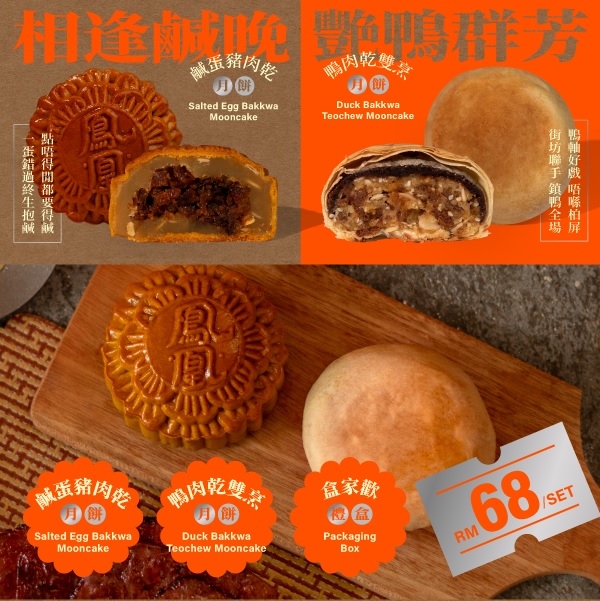 而另一款则是 “鴨肉乾雙烹 DUCK BAKKWA TEOCHEW MOONCAKE”,它的内陷更是独具匠心。里面蕴含着鸭肉干、红豆、 葵花籽、芝麻以及蜜桔,绝对是一种前所未有的口味组合!