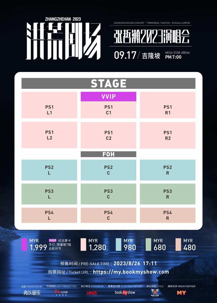 门票将于8月26日下午5点11分公开发售,演唱会票价格介于RM480至RM1999之间。