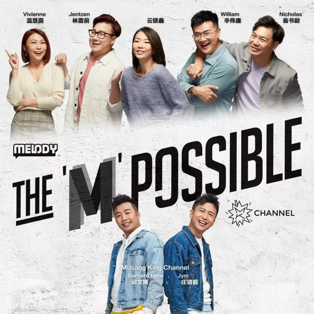 Astro 中文电台 MELODY 与 Musang King Channel 共同推出了社交实验企划「THE ‘M’POSSIBLE」系列影片,挑战MELODY 的DJ 云镁鑫、Jentzen 林震前、Vivienne 温慧茵、William 辛伟廉和 Nicholas 翁书蔚,让他们在没有心理准备的情况下踏出舒适圈,有的走向人群,有的‘做苦力’,有的挑战最不擅长的运动项目。他们在企划中正视自己的弱点,进而勇敢挑战自我、向前迈进!
