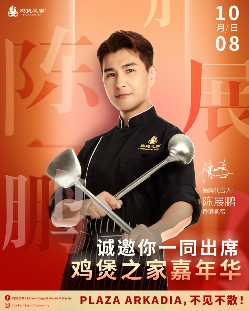 香港视帝陈展鹏与代言餐厅鸡煲之家合作 1 周年,将于 10 月 8 日来马出席鸡煲之家嘉年华活动!届时,观众们将有机会目睹陈展鹏的精彩表演及近距离玩游戏互动。同时,嘉年华还将举办各种有趣的互动游戏和抽奖环节,送出丰厚的奖品。