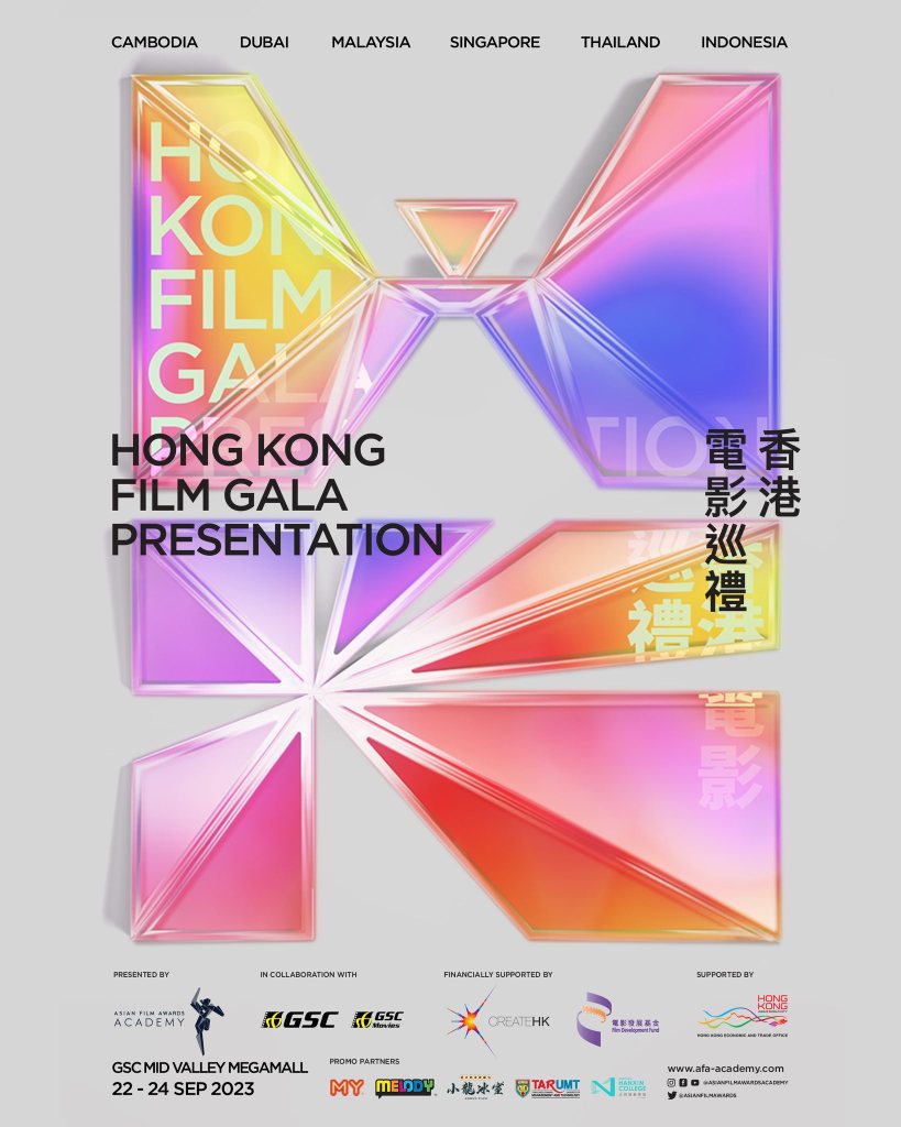 全新季度的「香港电影巡礼」以马来西亚为活动首站,由亚洲电影大奖学院主办,Golden Screen Cinemas(GSC) 和GSC Movies (GSCM) 协办,创意香港及电影发展基金资助,香港驻雅加达经济贸易办事处全力支持,定于2023年9月22日(星期五)至24日(星期日)一连3天在GSC Mid Valley Megamall举行。