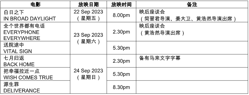 另外,前往马来西亚出席活动的嘉宾包括:在《白日之下》饰演入住老人院的长者,演出让人动容的姜大卫将连同黄浩然及简君晋导演一同出席开幕电影与映后分享会;
