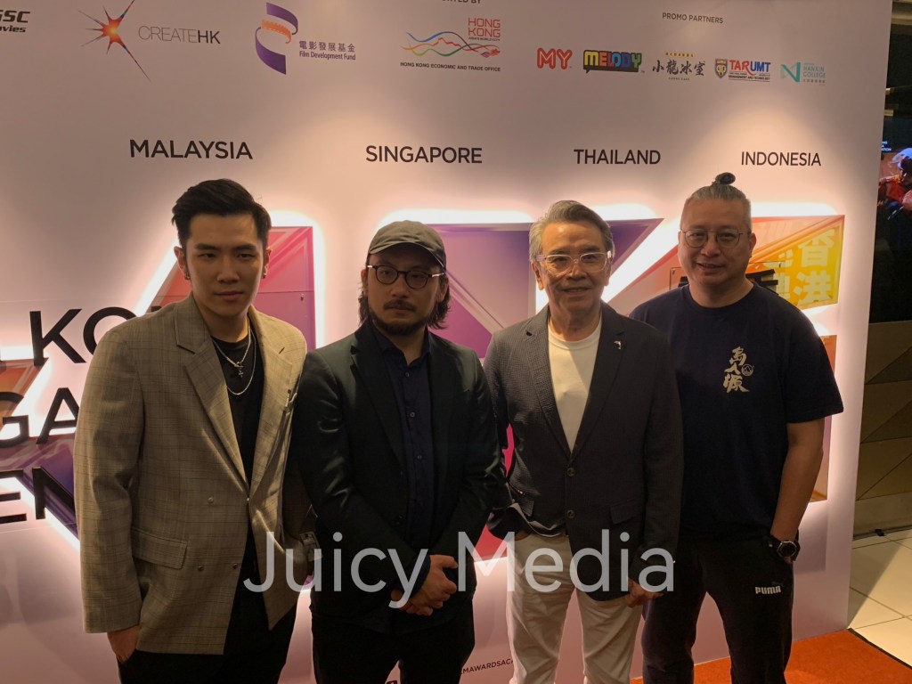 (左起)姜卓文、导演简君晋、姜大卫、导演黄浩然出席”香港电影巡礼”开幕礼。