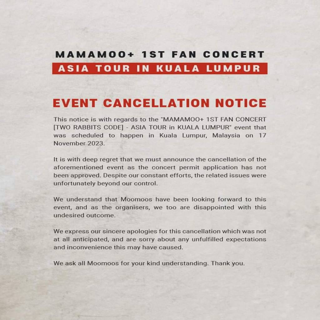 然而,就在9月27日,主办因准证不获批准的原因而宣布取消此演唱会!