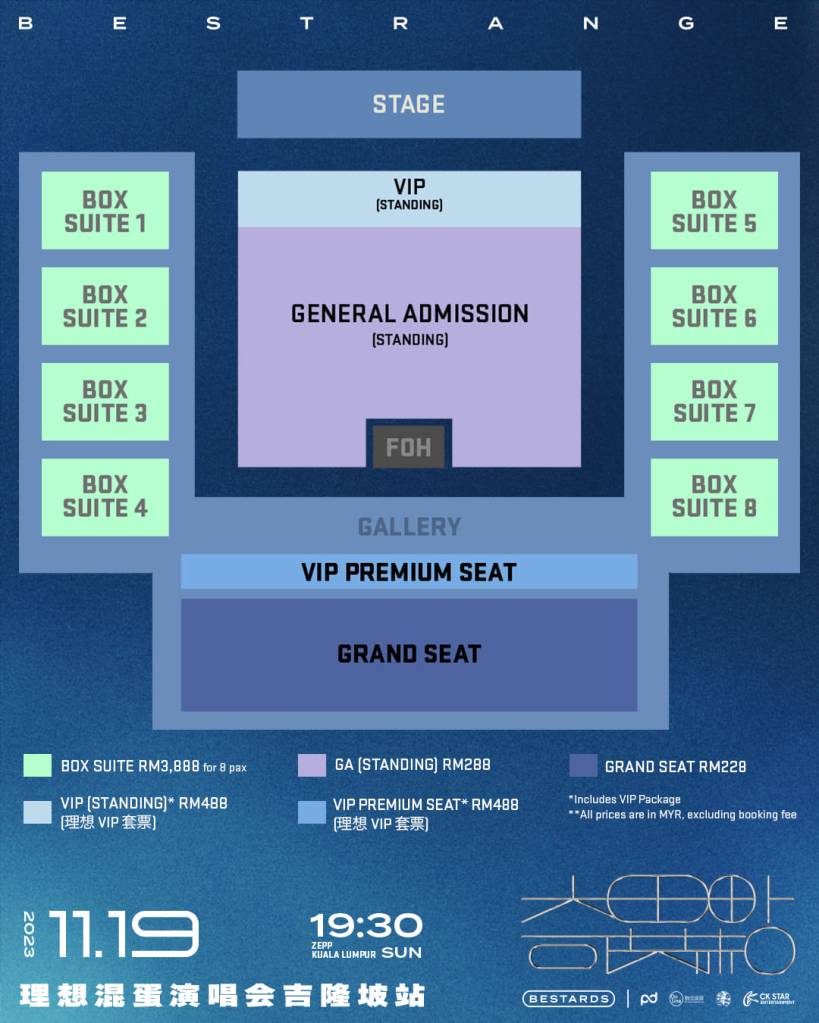 这场由 CK Star Entertainment 主办的理想混蛋 2023【奇异点 BESTRANGE】演唱会吉隆坡站将于 2023 年 11 月 19 日 (星期日),傍晚 7 点 30 分 在 Zepp Kuala Lumpur 正式开唱。