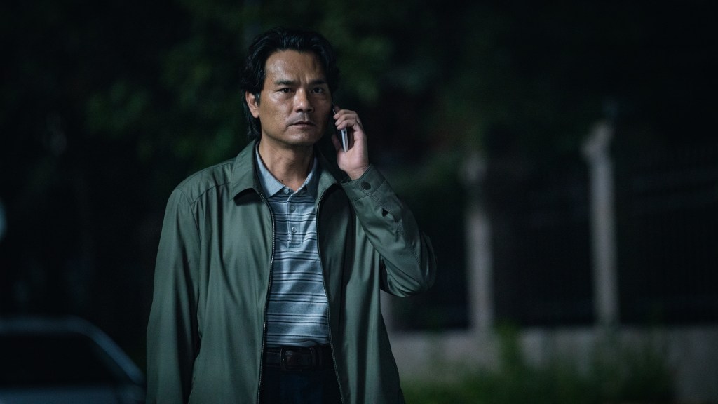 林家栋片中饰演中国公安王守月,与大鹏饰演的嫌疑人陈信文展开一场长达20年的兵抓贼的故事,之前有新闻提到林家栋拍追逐戏时摔了一跤,但敬业地带着脚伤仍能坚持18小时拍摄,成为剧组间的佳话。