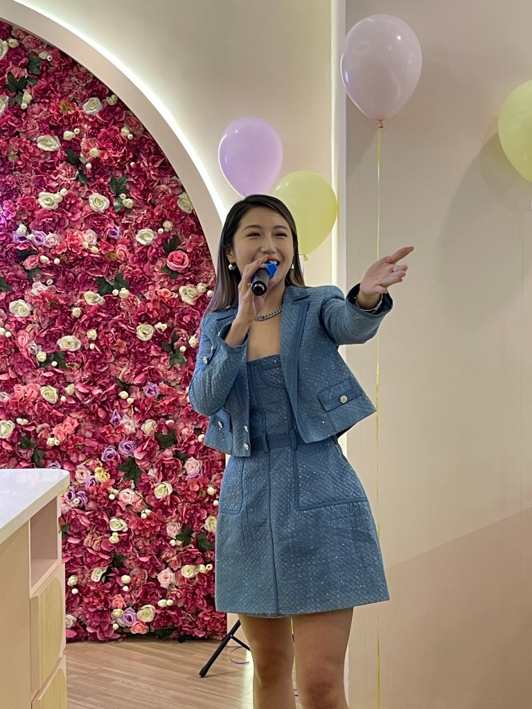 她声言由于疫情关系,大马的智能App烘焙体验馆Bakebe 开了三年多都没法来看一看,久违五年,这次终于过来马来西亚亲自“巡店”,也特别在店铺举办粉丝见面会:“我想把世界变得更甜,有个客人在香港分店体验后建议我把 Bakebe带入马来西亚,轻松烘培时疗愈又解压。”