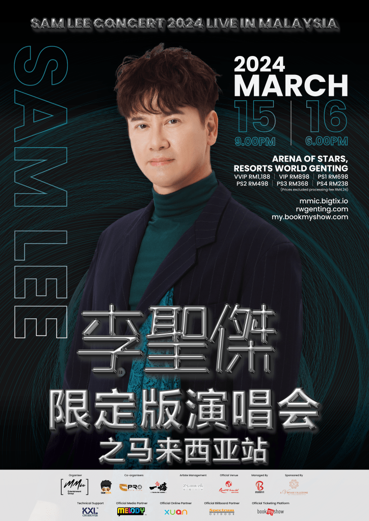 “李圣杰限定版演唱会之马来西亚站”将于2024 年3月15日(星期五)晚上9时及16日(星期六)傍晚6时在云顶世界云星剧场举行。