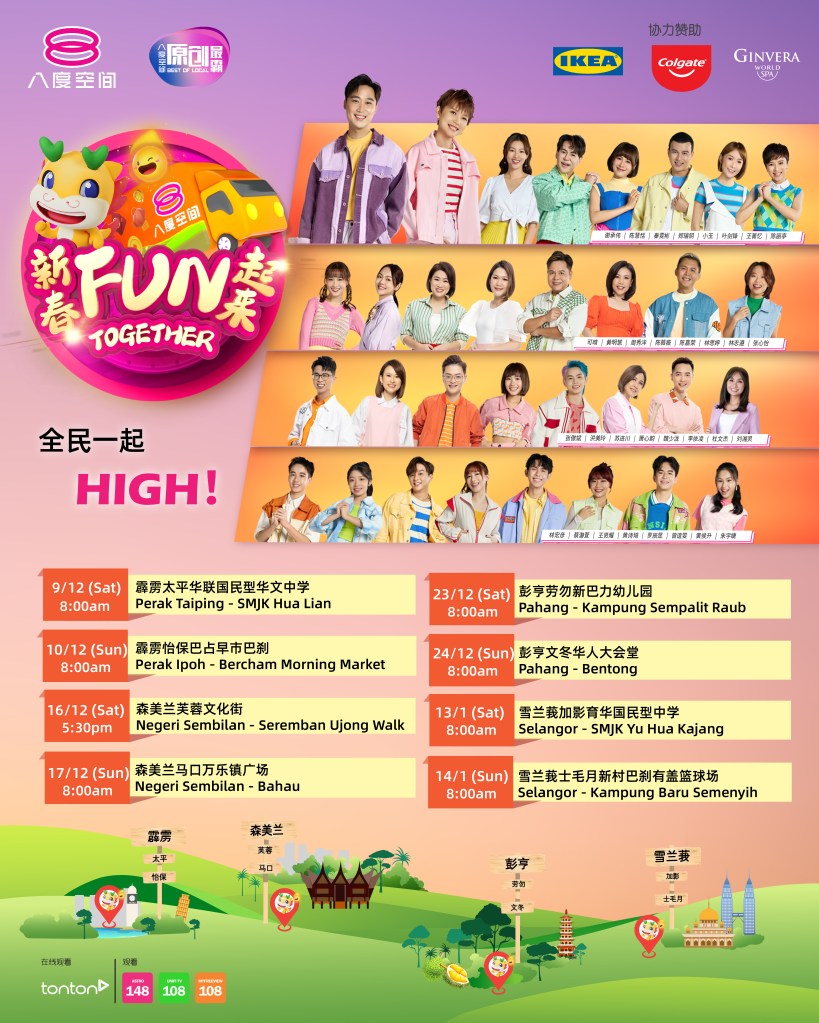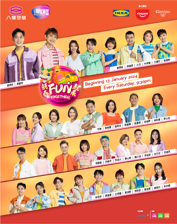 2024年的《新春FUN起来》将推出4集,由Orange陈慧恬和Rickman谢承伟继续担任主持人,他们将联手一众艺人嘉宾,为观众送上丰富的奖金和奖品!