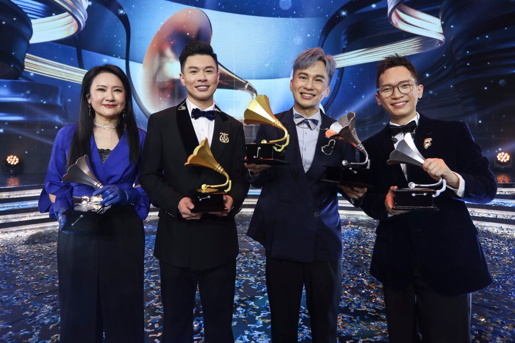 《Astro 经典名曲歌唱大赛 2023》冠亚军的得主分别是前辈组的(左起)亚军何平秋与冠军吴汶聪,以及后辈组的冠军曾国辉与亚军吴建亿。