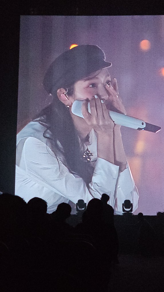 当Jessica在Talking环节说到一半时,不料大荧幕上突然出现大马粉丝的应援影片,影片中大部分的粉丝都表示自己追随了她10年以上,并感谢她一直以来努力地坚持了下来,会一直与她同在时,让她当场蹲下观看时哽咽不已,还要拿舞台上的抹布擦去眼泪,让粉丝大喊:“不要哭!”