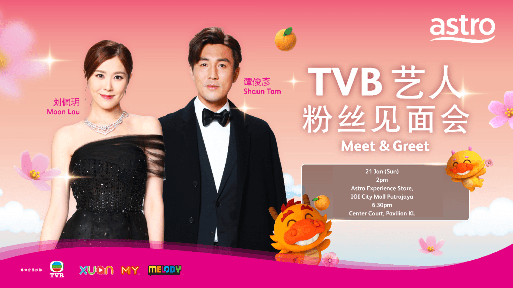 在来临的星期日(1月21日)吉隆坡站的新春活动除了能见到超萌又活泼的‘开心龙’吉祥物外,Astro更特别邀来TVB 艺人谭俊彦和刘佩玥来马向粉丝见面拜早年!