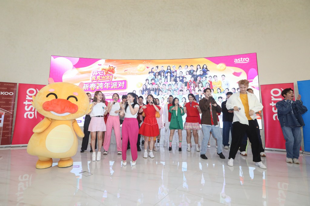 出席发布会的艺人们在发布会结束前献唱Astro新春主题曲《开心龙龙Way》。