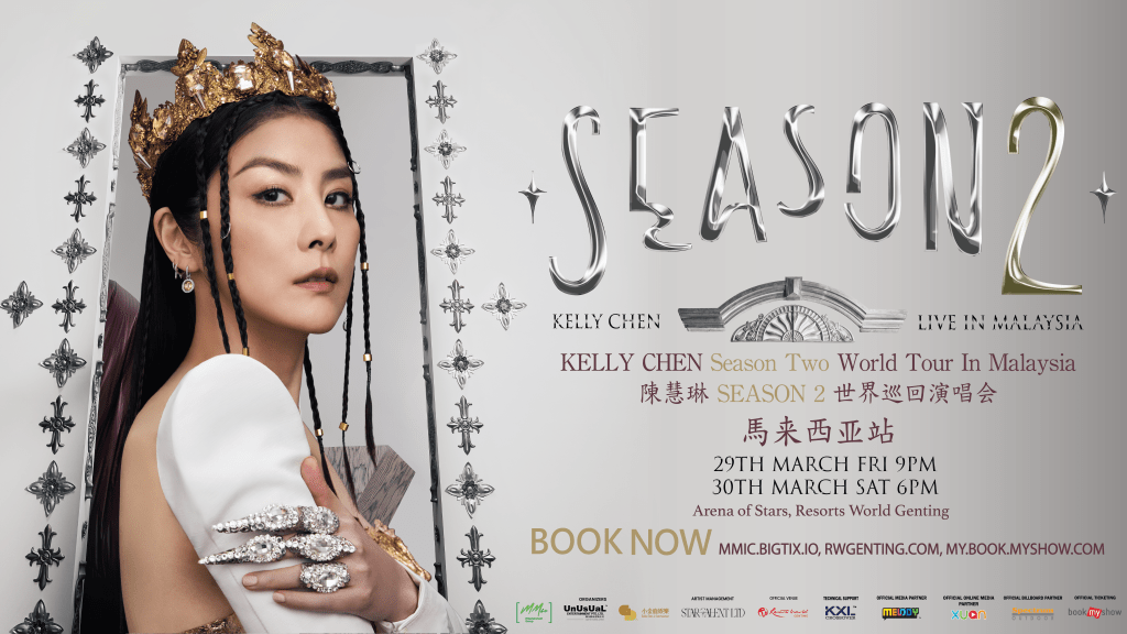 由MMIC娱乐、飛凡娱乐、小金鹿娱乐主办《陈慧琳Season 2 世界巡回演唱会马来西亚站》(KELLY CHEN Season Two World Tour In Malaysia)将于3月29日(星期五)晚上9时及30日(星期六)傍晚6时于云顶世界云星剧场惊艳登场。
