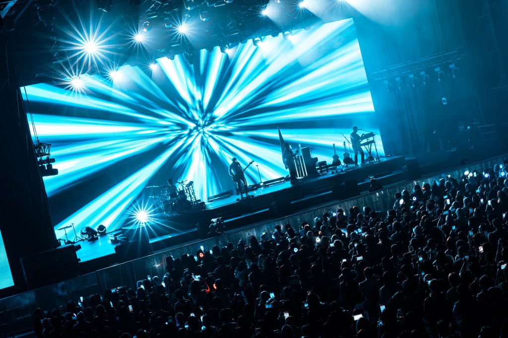 这场视听盛宴中,The Rose与粉丝现场互动引来疯狂呐喊声,演唱<Red>时,还带动粉丝站起来,一起挥舞荧光棒,现场呈现红海一片,掌声连连。