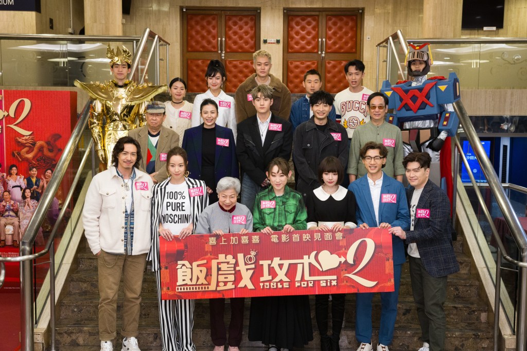 《饭戏攻心2 – 喜上加喜喜电影首映见面会》日前在香港沙田大会堂演奏厅举行,导演陈咏燊率领邓丽欣(Stephy)、张继聪、王菀之(Ivana)、林明祯及陈湛文五位「饭团」,以及一众演员包括魏浚笙(Jeffrey)、何启华(Dee)、罗兰、蒋志光、黎彼得、凌文龙、杨偲泳、胡子彤、林家熙(Locker)、伍咏诗、黄呈欣,跟全球首批欣赏电影的观众见面。