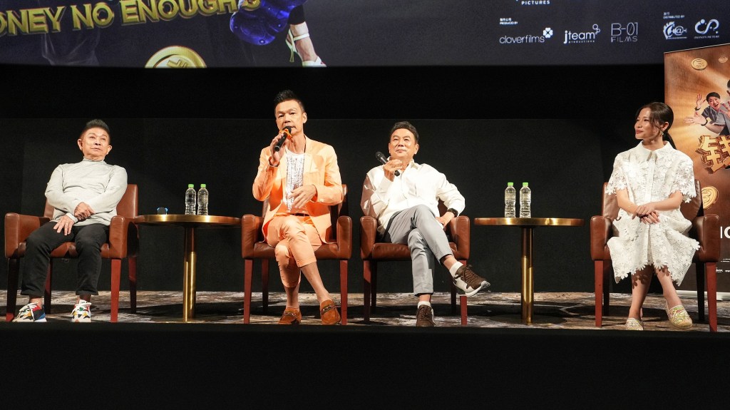 梁导、李国煌和辉哥也在现场演唱《不要怪老天不公平》的主题曲,梁导更呼吁大家喊:“跟我一起喊‘钱不够用’,喊了后就会‘全部够用’!”他们也边唱歌边走去观众群与影迷互动及派电影周边红包封,场面沸腾。