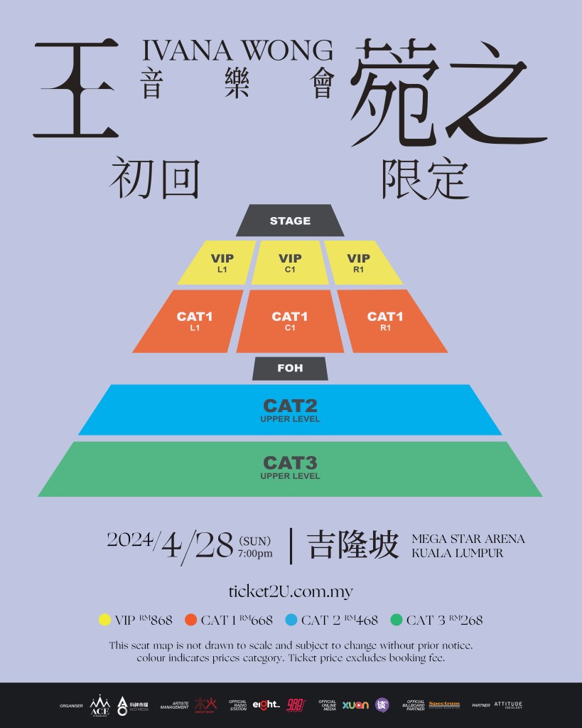 🎫 票价:VIP RM 868 | CAT 1 RM 668 | CAT 2 RM 468 | CAT 3 RM 268 (未包含手续费)