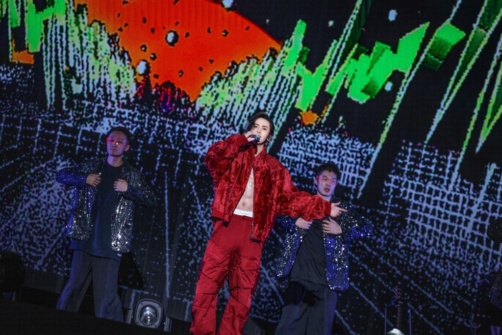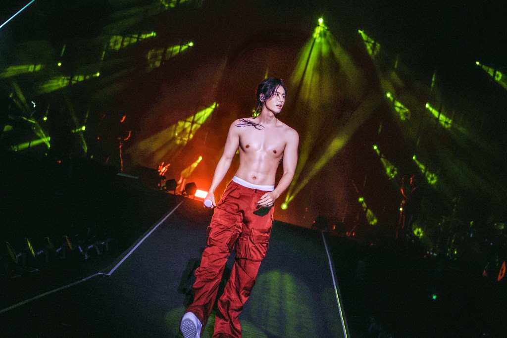 而在唱到摇滚歌曲《曼陀罗》、《Believer》,全场酣畅淋漓之际,张哲瀚一秒变装,脱去外套大秀好身材,活力振奋的舞台将现场气氛推至最高点。
