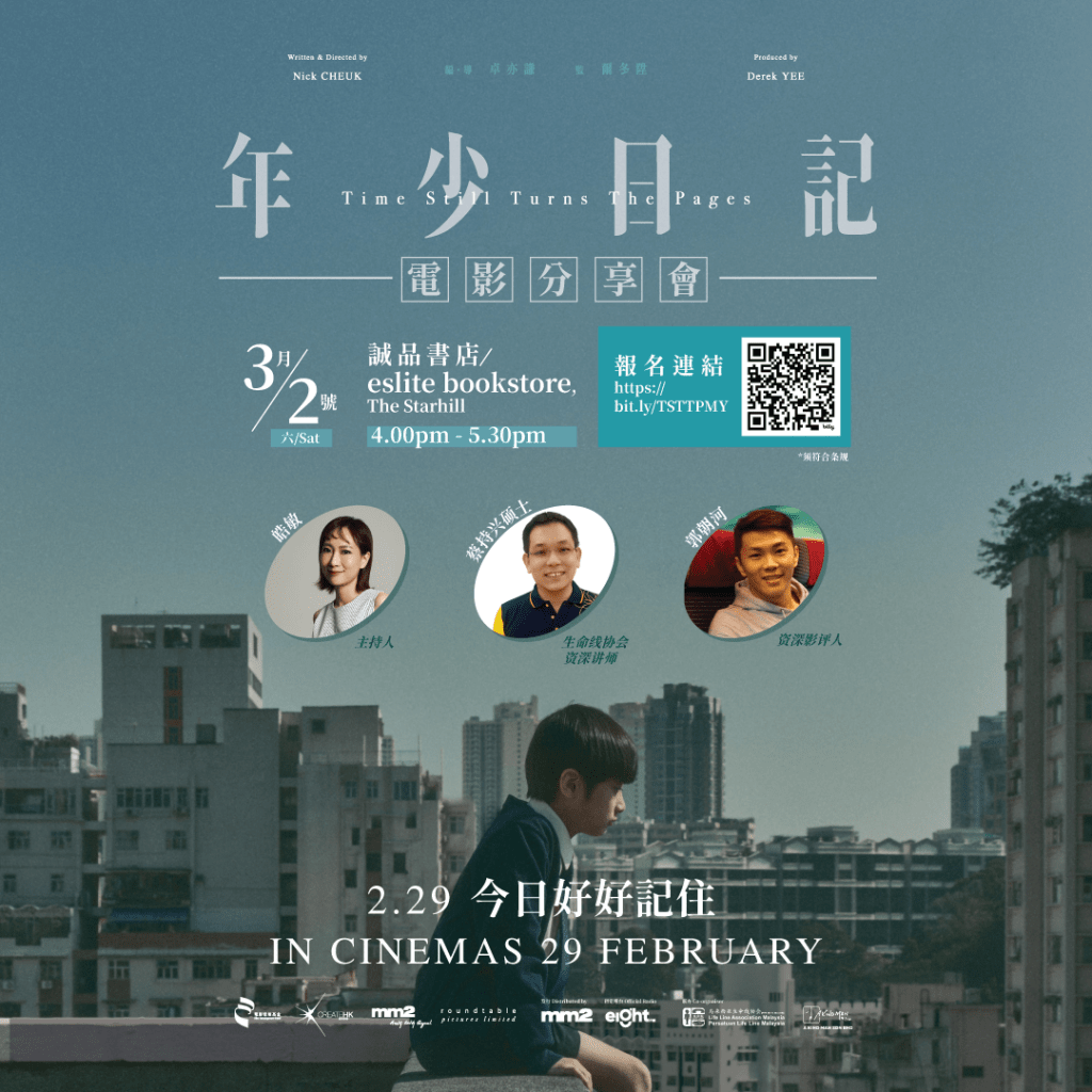 香港电影《年少日记》敲定2月29日全马上映,电影发行公司mm2 将在3月配合主题,联合eslite Forum、马来西亚生命线协会和有种人博客,一齐办两场分享会。