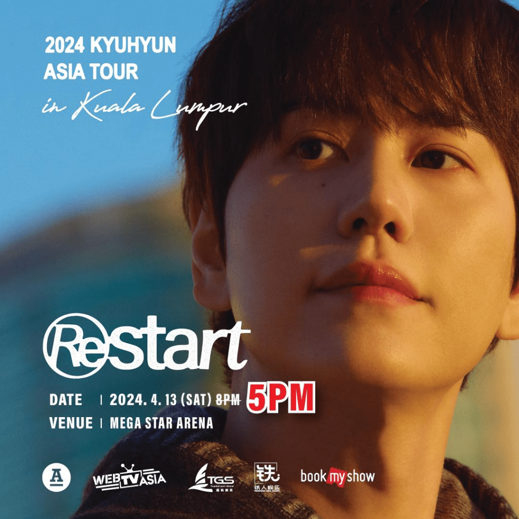 由Antenna & WebTVAsia联合主办的圭贤《RESTART》亚洲巡回演唱会吉隆坡站将于4月13日(周六)晚上8时(最新消息-由于临时突发状况,演出时间将从晚上8时更换至下午5时),在Mega Star Arena举办。