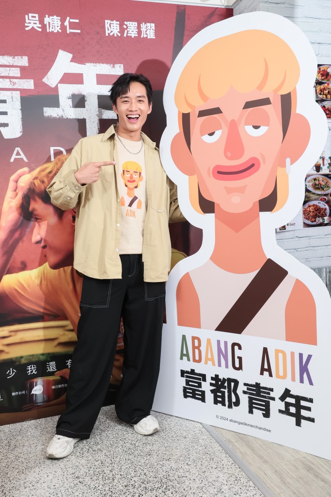 昨晚导演与吴慷仁、陈泽耀穿上周边T恤现身庆功宴,吴慷仁穿阿邦款,陈泽耀穿阿迪款,导演则穿有阿邦、阿迪、Money姐Q版角色的一家团圆款。