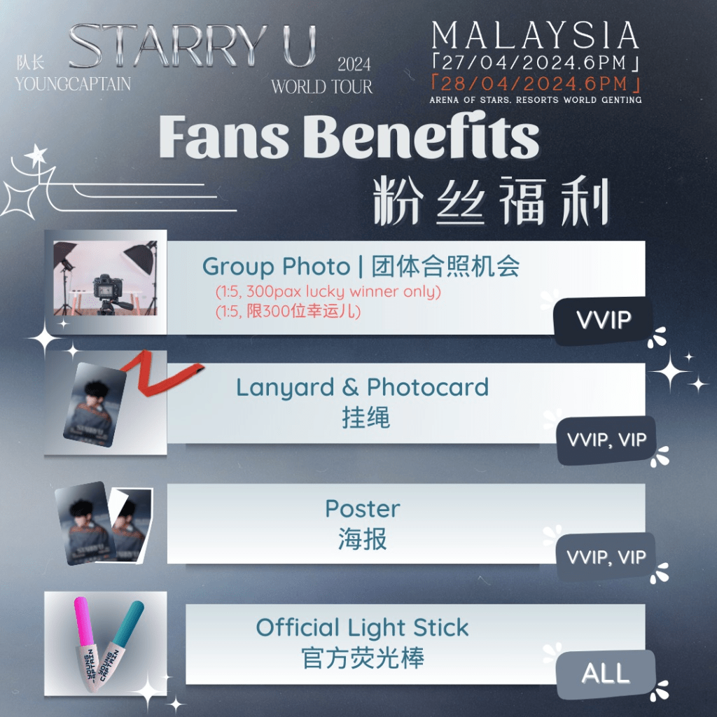 队长迷,好消息来了!队长Young Captain 2024 世界巡演<STARRY U>大马站,3月22日门票公开发售后由于反应太热烈,一开票立即引发粉丝抢购,在四个小时全被抢光!