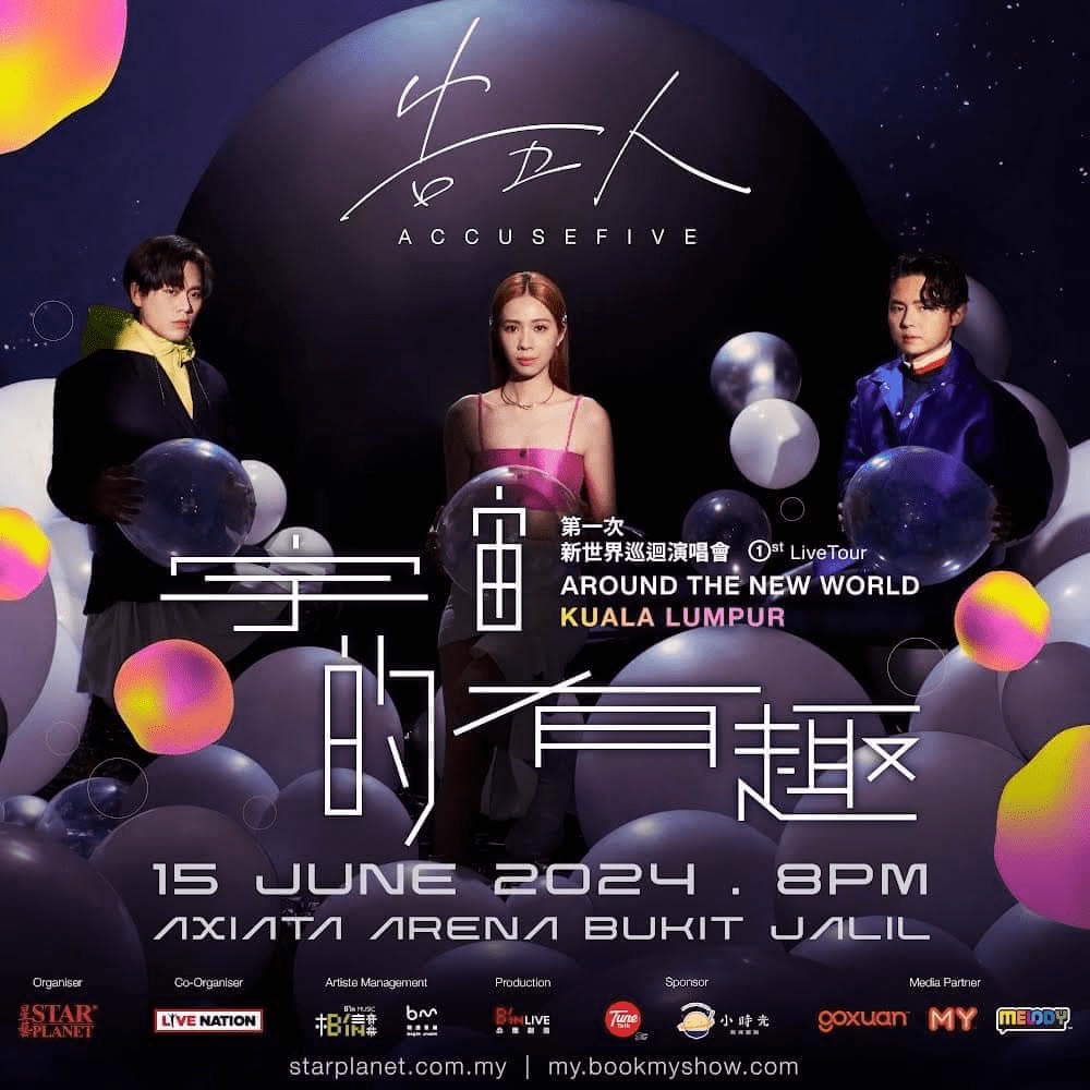 台湾人气乐团【告五人】将于6月15日,晚上8点,在吉隆坡 Axiata Arena Bukit Jalil 室内体育馆举办《告五人第一次新世界巡迴演唱会【宇宙的有趣】》!