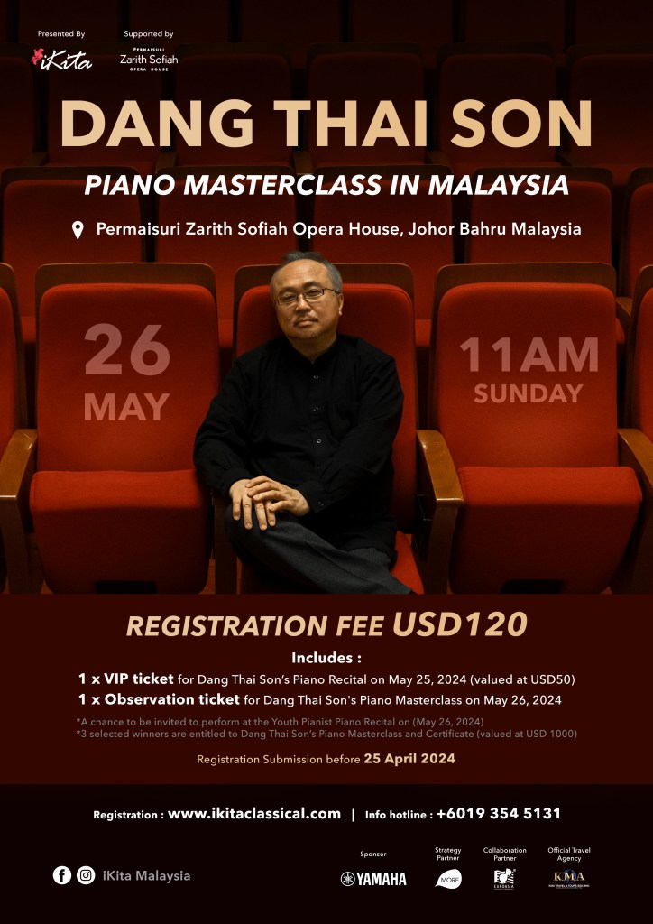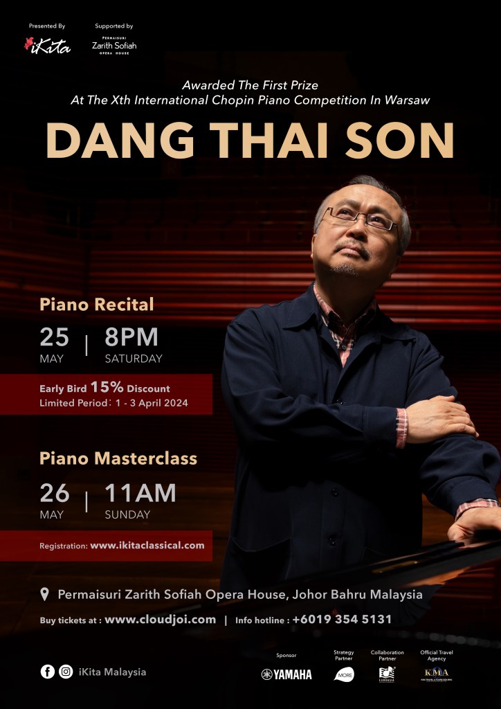 邓泰山将于5月25日(星期六)和5月26日(星期日),在马来西亚柔佛新山的Permaisuri Zarith Sofiah歌剧院举办“钢琴独奏音乐会”和“钢琴大师班”。