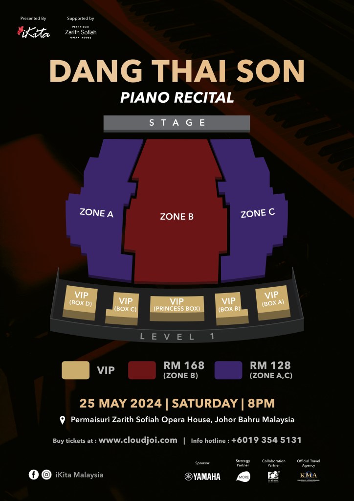 这场钢琴音乐盛宴将为音乐爱好者们带来难得的机会,票价从RM128起,而在正式售票的首前三天,更可享受早鸟优惠15%的折扣。