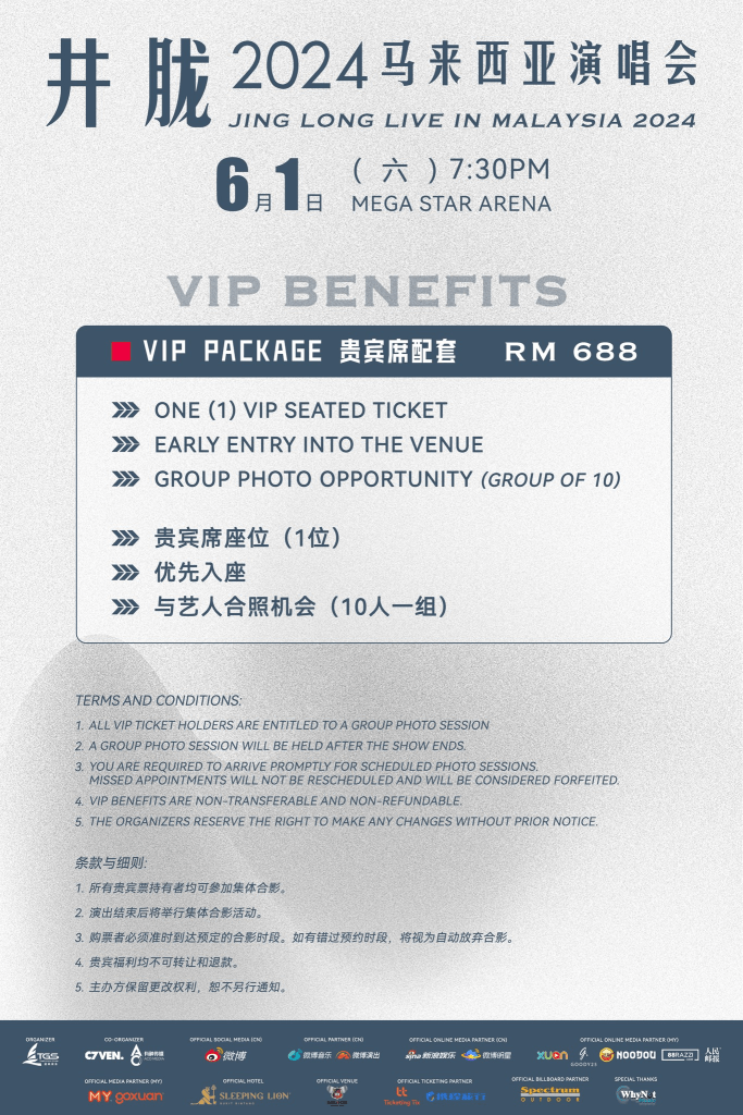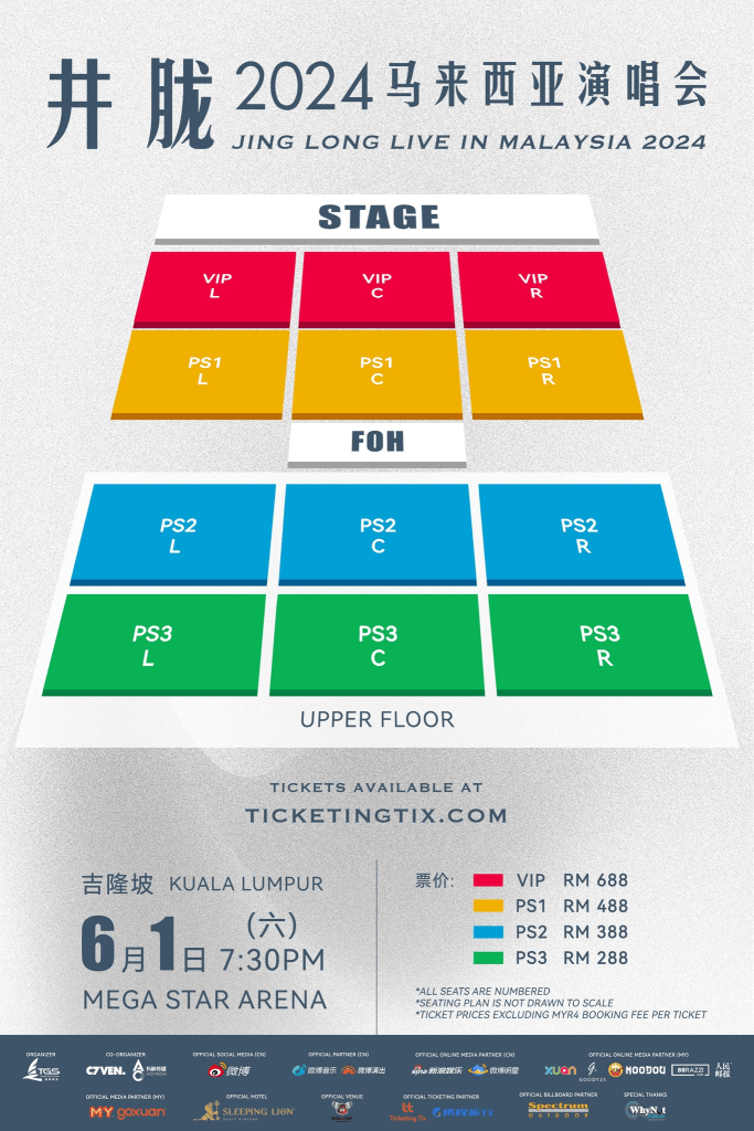 票价:VIP RM 688 | PS1 RM 488 | PS2 RM 388 | PS3 RM 288 (未包含手续费)