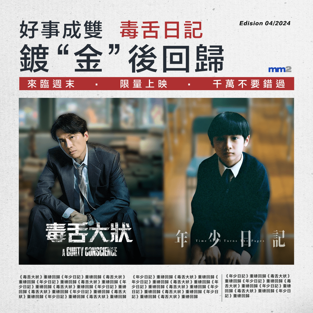 为欢庆电影获奖,电影发行商mm2 联合影院,让这两部得奖作品在4月19至21日周末限量重映,地点包括 GSC, The Starling Mall、TGV, Pavilion Bukit Jalil、DADI Cinema Pavilion Kuala Lumpur、mmCineplexes Plus, Berjaya Times Square 以及Mega Cineplex, Prai, Penang,让之前错过电影和想要“二刷三刷”的朋友能共同感受这两部电影带来的独特魅力!