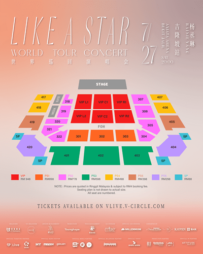 🎫票价:VIP RM 948 | PS1 RM 898| PS2 RM 778 | PS3 RM 598 |PS4 RM 498 |PS5 RM 398