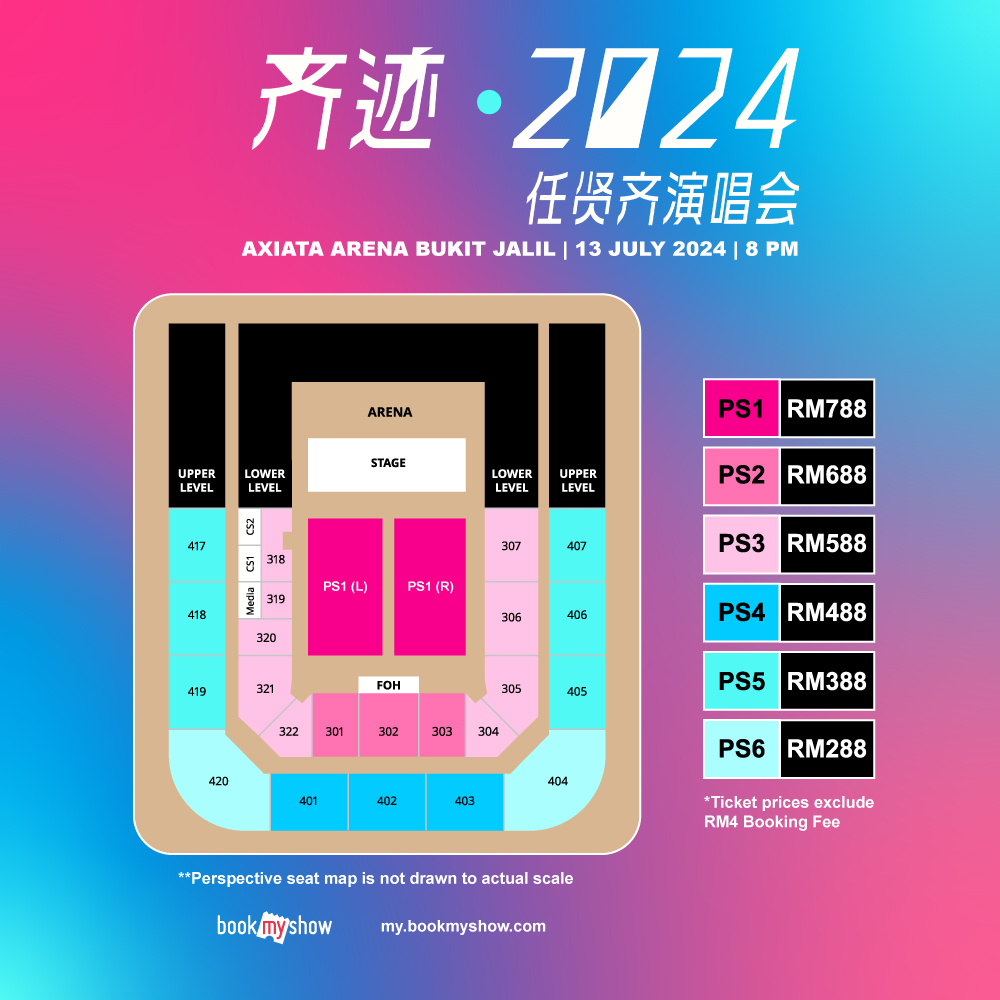 票价:RM788(PS1)、RM688(PS2)、RM588(PS3)、RM488(PS4)、RM388(PS5)、RM288(PS6)