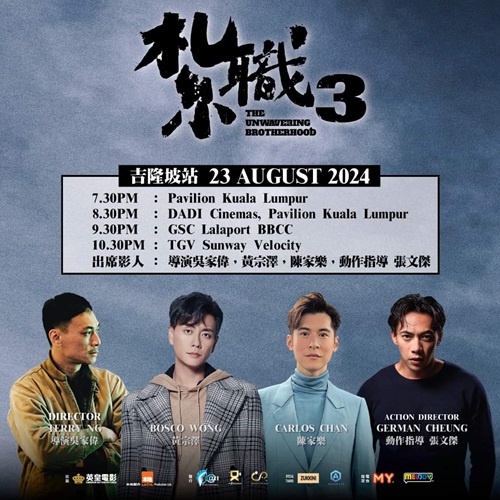 黑帮港产片《 #扎职3》两大男神 #黄宗泽、#陈家乐,以及导演 #吴家伟 即将在8.23 & 8.24到吉隆坡、槟城与影迷们见面