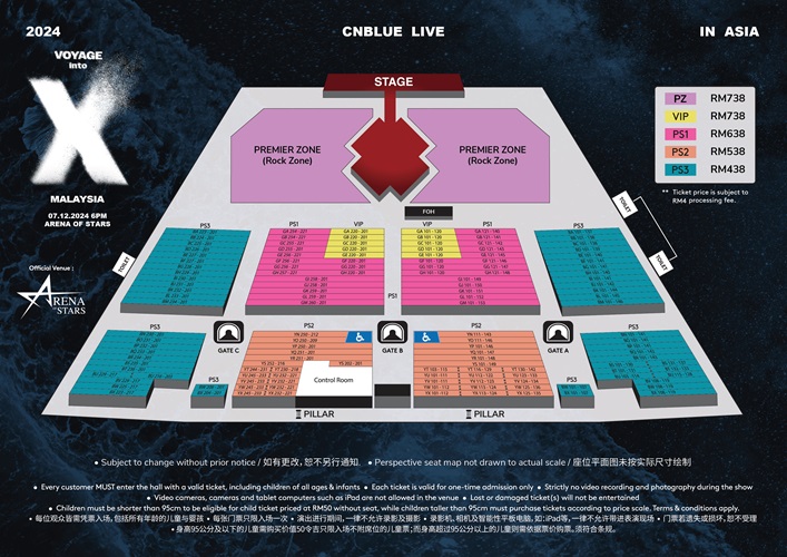 💰门票价格:(PZ/VIP) RM738、(PS1) RM638、(PS2) RM538、(PS3) RM438
