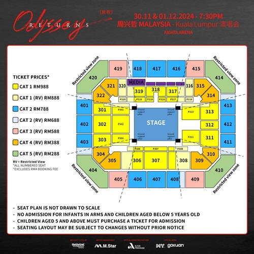 2024年11月30日和12月1日,Eric将带着 [Odyssey ~ Journey RETURNS] 巡回演唱会华丽回归马来西亚站,再度站上Axiata Arena, Bukit Jalil的舞台。这一次,Eric 将首度呈献四面舞台的演出!