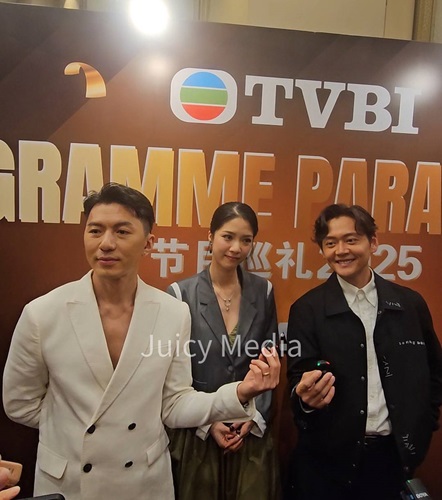 TVB艺人袁伟豪(Benjamin)、张振朗和陈晓华(Hera)于11日晚上出席TVBI在吉隆坡举行的《TVBI 2025节目巡礼》,为尊贵客户和媒体推介明年重磅推出的剧集及综艺节目。