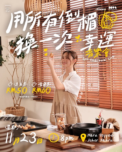 Jasmine张静汶《用所有倒霉换一次幸运 Spill the tea! Live》与11月23日(星期六),晚间8点在柔佛 Haru Coffee 举行。早鸟票目前已截止,普通票价为60令吉,每张票都包含一杯饮料。