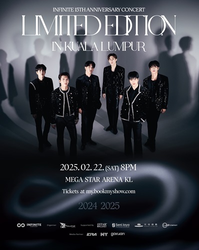 韩国人气男团INFINITE时隔12年回归马来西亚,举行15周年限量版世界巡演!演唱会将于2025年2月22日,晚上8点,在Mega Star Arena KL引爆!