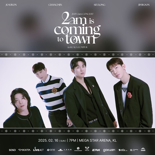 韩国经典情歌组合 #2am 宣布,将正式启动 2025 年亚洲巡演,继成功完成韩国国内巡演后,首站将于 2025 年 2 月 16 日,晚上 7 点在吉隆坡的 Mega Star Arena 举行 2025 2am 演唱会 <2am is coming to town> in Kuala Lumpur!