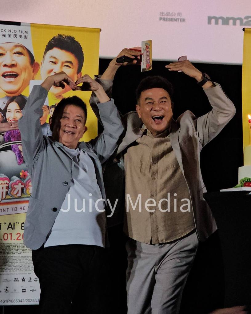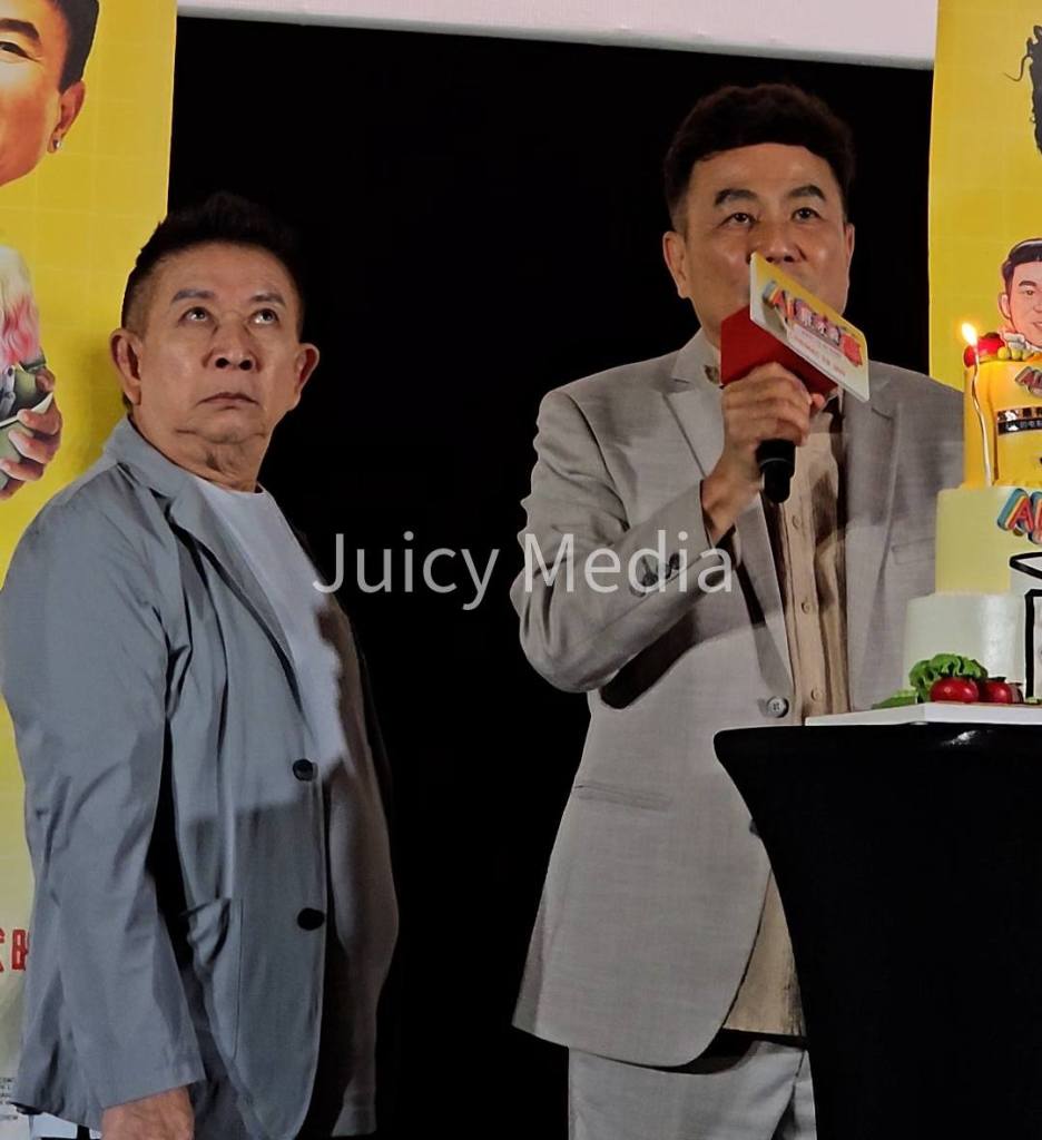 由 #梁志强 执导的贺岁片《#AI拼才会赢》来马宣传,梁导今日率领 #辉哥(#程旭辉)、#莫小玲、#姚懿珊、#阳光可乐 及 #曹国辉 出席吉隆坡记者会,适逢明天(1月24日)是梁导65岁生日,大会也为他送上生日蛋糕庆祝,不料他的生日愿望竟是:希望辉哥可以好好拍戏,演戏时不要发脾气,让辉哥翻白眼后乖乖说“可以可以”,场面搞笑!
