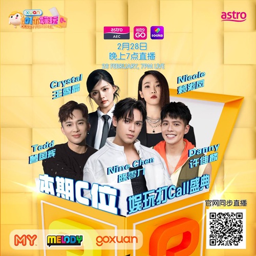#Astro 直播娱乐节目《#XUAN加你娱玩》即将于下星期五(2月28日),晚上7时,现场直播特别企划——《#娱玩打Call盛典》。
