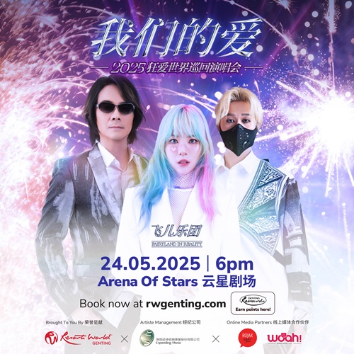 飞儿乐团「我们的爱」2025狂爱世界巡回演唱会,终于要来马来西亚啦!2025年5月24日星期六傍晚6时,与F.I.R.飞儿乐团在云星剧场一起唱响青春的回忆!