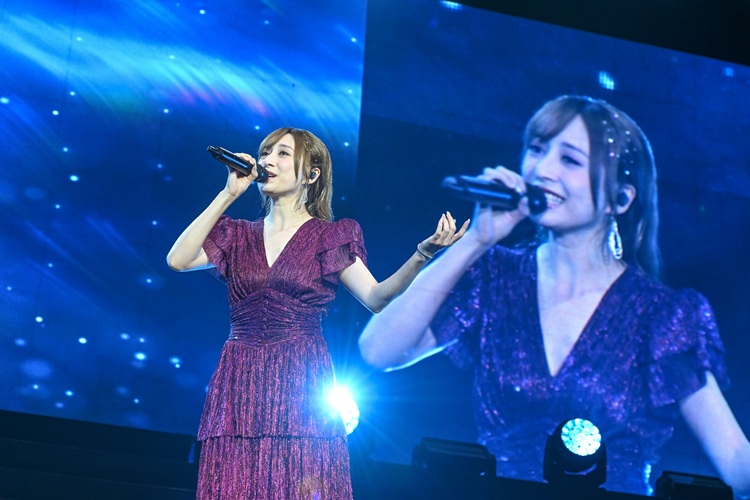 视后龚嘉欣则身穿紫色礼服亮相,一曲《至少还有你》后在聊天环节上透露,大马让她有回家的感觉。她曾在大马创业开火锅店,虽因疫情结业,但希望未来重新开业时能得到大家支持。为了感谢大马剧迷,她特别选唱《分分钟需要你》,并穿着 5 寸高跟鞋走下台边唱《红日》边与粉丝近距离互动,更获 TVB 高层乐易玲即场献吻。