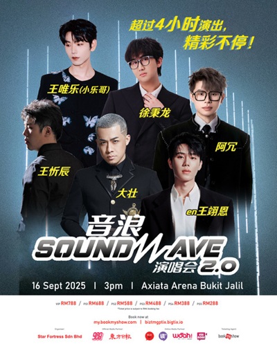 这场齐聚人气与实力歌手的超强阵容演出——「音浪」舞台,将于2025年9月16日(星期二)下午3点,在吉隆坡 Axiata Arena Bukit Jalil 热力开唱,将引爆全场、掀起四小时不间断的精彩演出!