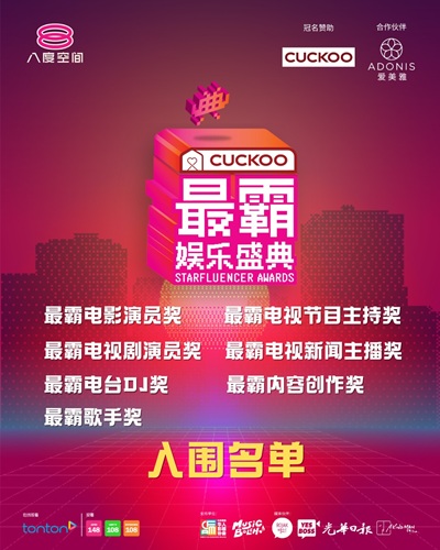 继上周公布三大奖项入围名单引发热议后,如今由专业评审团选出的《八度空间 CUCKOO 最霸娱乐盛典》各大奖项五强名单也正式揭晓!