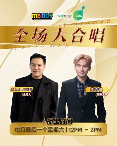 Astro 中文电台 #MELODY 热门节目《#MELODY全场大合唱》迎来全新主持阵容!节目首度与香港 TVB Music Group 携手合作,每个月月尾将由旗下歌手 #周吉佩 与 MELODY DJ #Nicholas翁书尉 联手主持,为听众带来更多音乐火花与跨地交流。