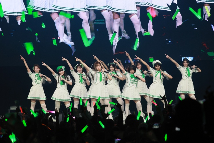 接着她们陆续也演绎了《Green Flash》、《Heavy Rotation》、《High Tension》、《Flyng Get》和《Alasanku Maybe》等舞曲,舞步整齐划一,笑容可爱迷人,不愧是青春无敌的最佳写照。